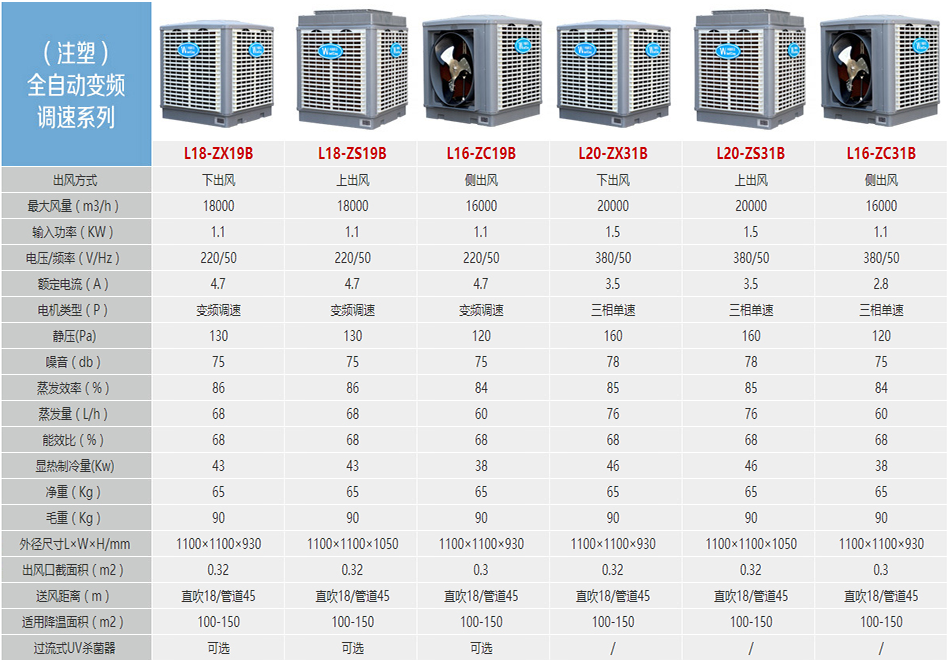 4.换气覆盖面积大:每台(1.1kw为例)冷风机覆盖面积达80-120平米,每小时送风量达18000m³,风压大送风远.